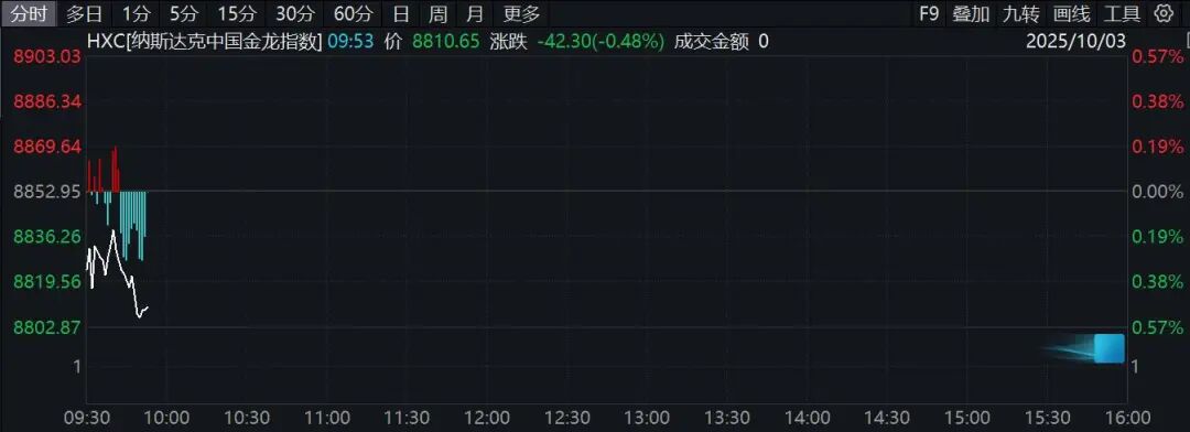納斯達克中國金龍指數小幅下跌,熱門中概股表現分化。新能源車企走弱,小鵬汽車跌超4%,蔚來、理想汽車跌超3%;百度集團、迅雷漲超2%。